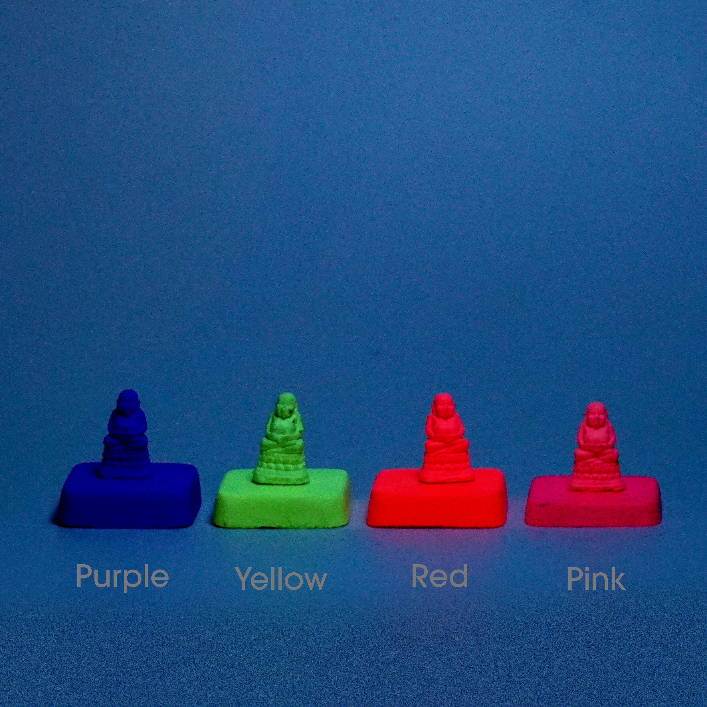 通常光で鮮やかな発色が得られるほか、ブラックライト(紫外線)に反応して光ります。