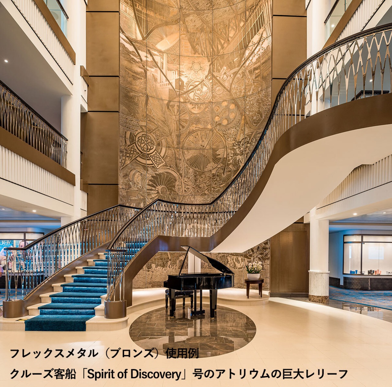 JESMONITE® Flex Metal(フレックスメタル)は、水性アクリルのリキッドと、微細なメタルパウダーを既調合した無機原料のベースの2材からなるアクリル複合素材です。本物の金属粉末を混合することで、さまざまな金属仕上げを実現しています。完全水性、常温でキャスティング・積層(FRP)が可。