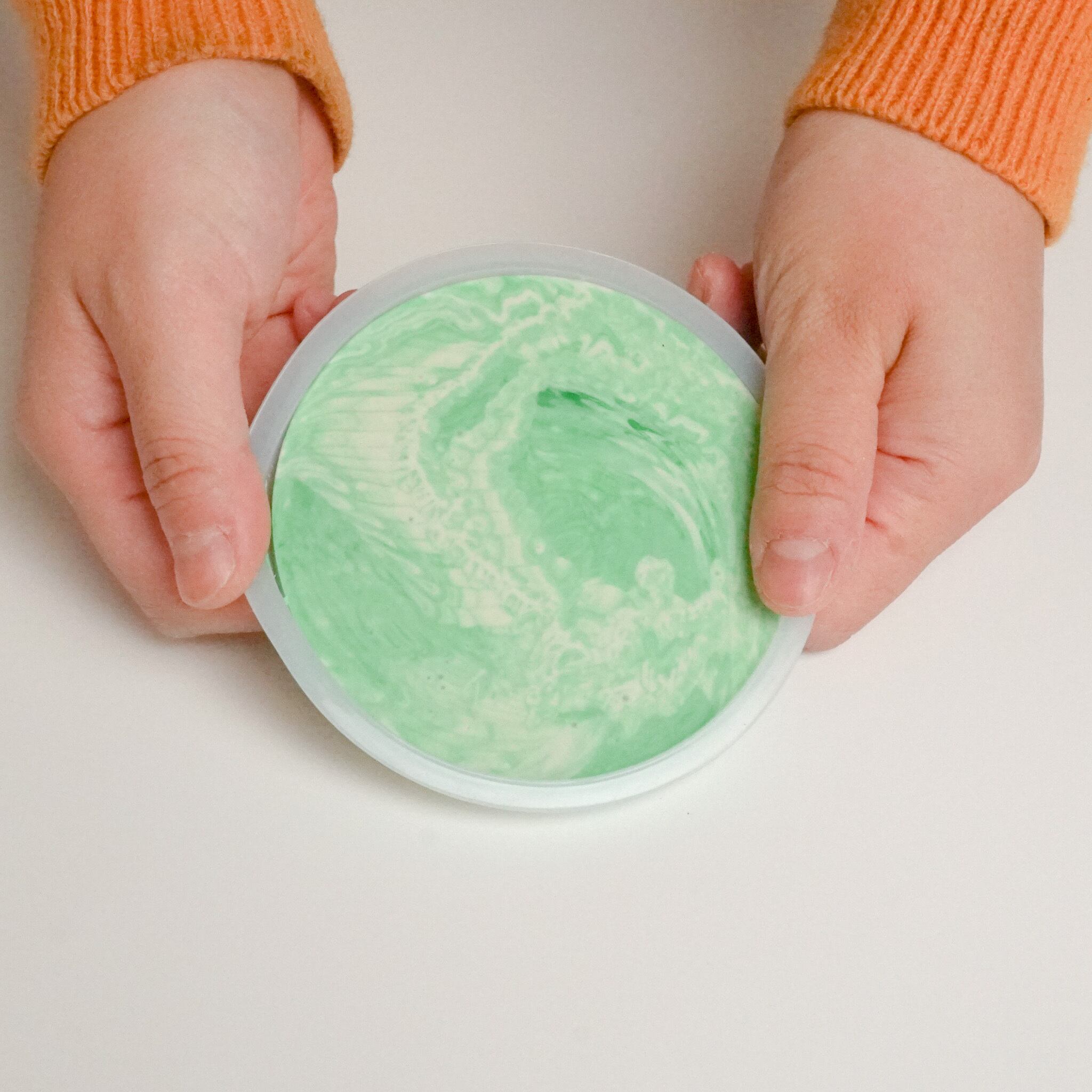 フラットな面と滑らかな曲面があるため、ジェスモナイトの質感や、異素材を混ぜ合わせた際のテクスチャのサンプル作成に適した商品となっています。