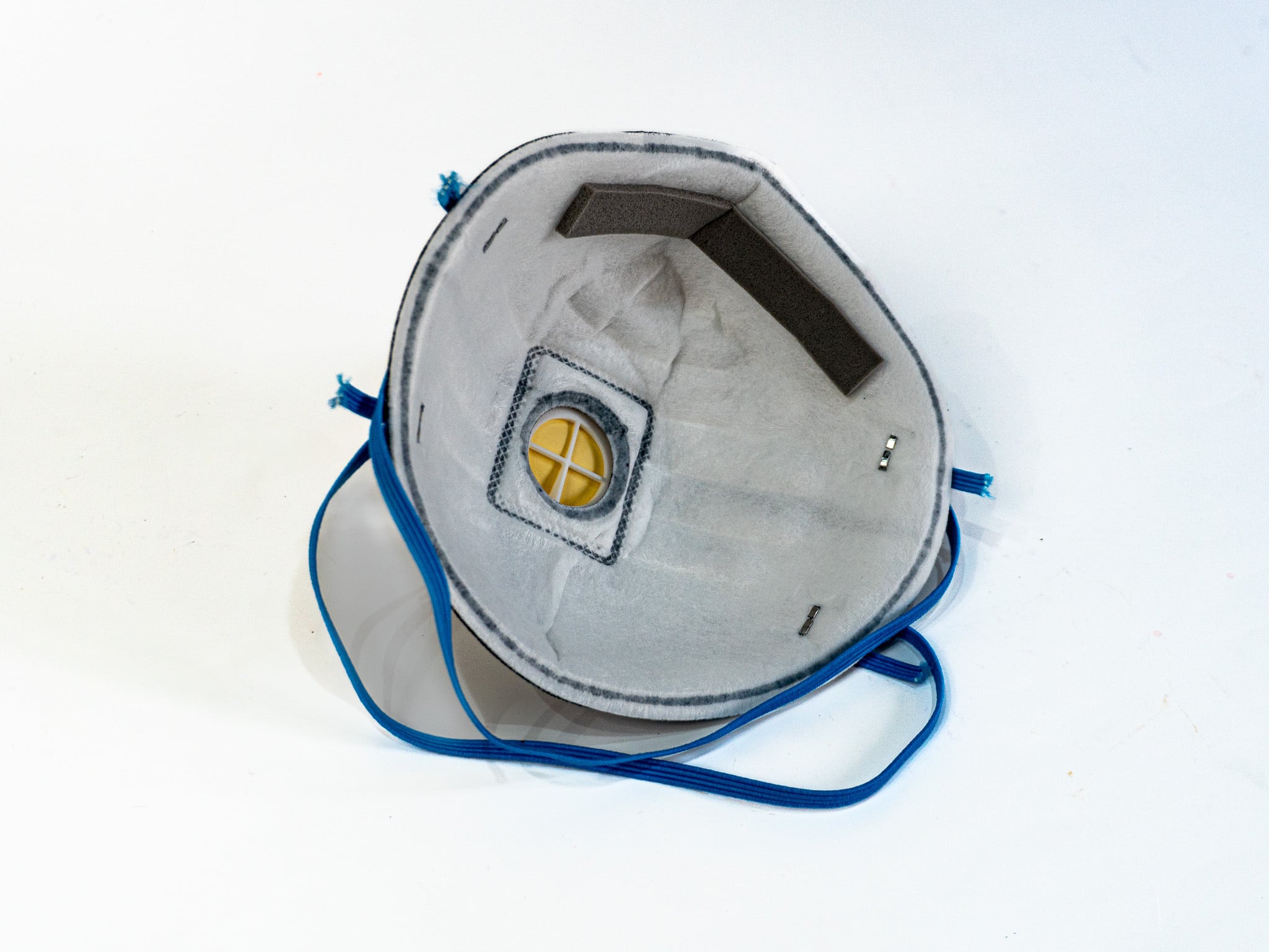 ジェスモナイトのベース(粉)、の計量&攪拌時に空気中に舞い散る粉塵の吸入を防ぐための防塵マスク(防じんマスク)です。